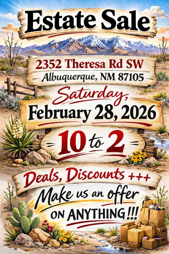 Dust off your shopping shoes and come see us this winter and spring 2026. There’ll be treasures to find all over the Albuquerque area, stories to share, and plenty of smiles to go around. Join us at the next estate sale—where the fun starts at the front door. And be sure to keep up with us on social media, too!