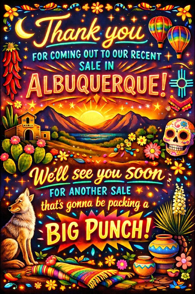 Dust off your shopping shoes and come see us this winter and spring 2026. There’ll be treasures to find all over the Albuquerque area, stories to share, and plenty of smiles to go around. Join us at the next estate sale—where the fun starts at the front door. And be sure to keep up with us on social media, too!